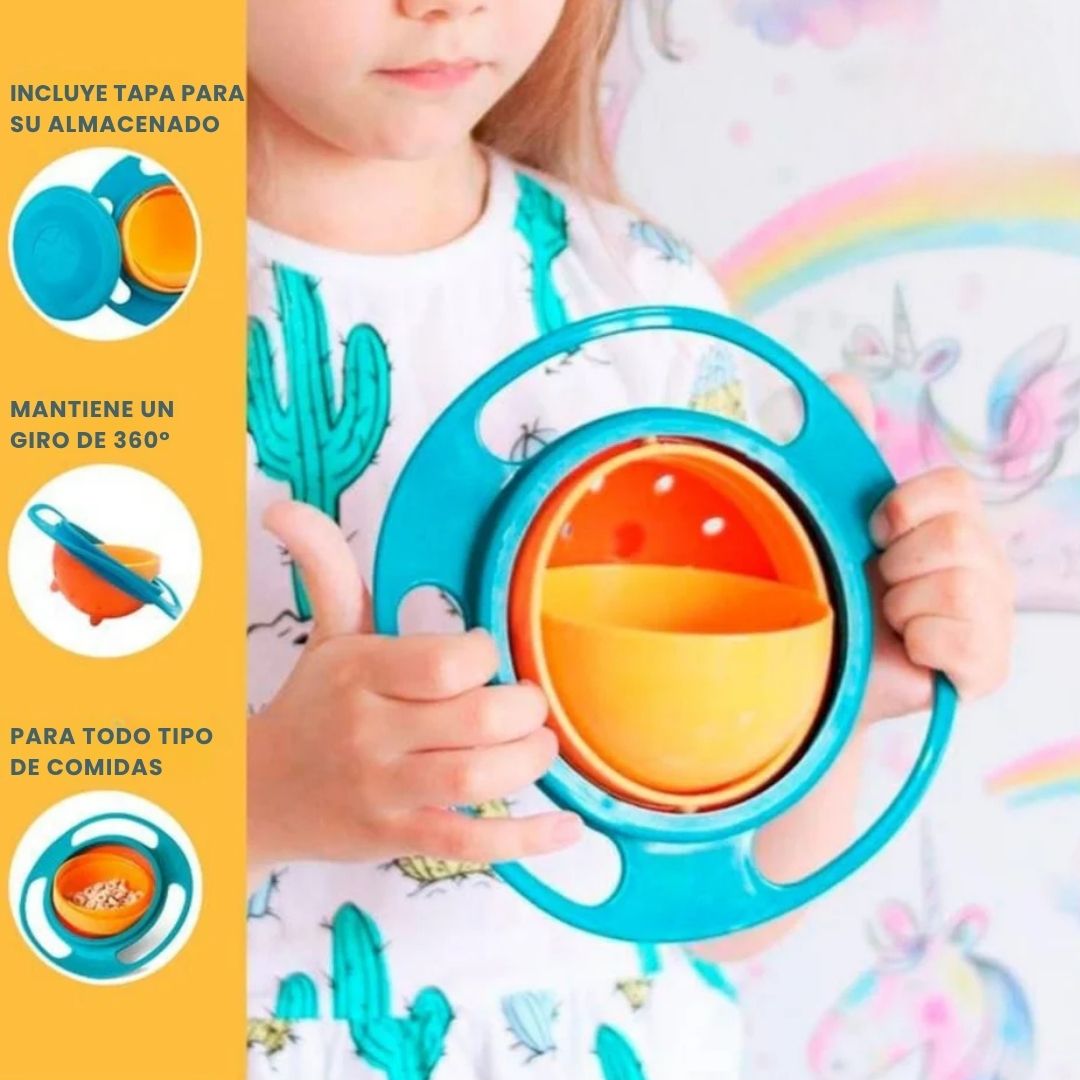 Sí. Gracias a su sistema antigiro 360°, el bowl mantiene el cuenco interior siempre en posición estable, evitando derrames incluso si el niño lo gira o lo inclina.